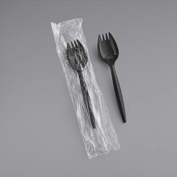 Medium Weight Plastic Spork, Individually Wrapped, Black [1000 Pack