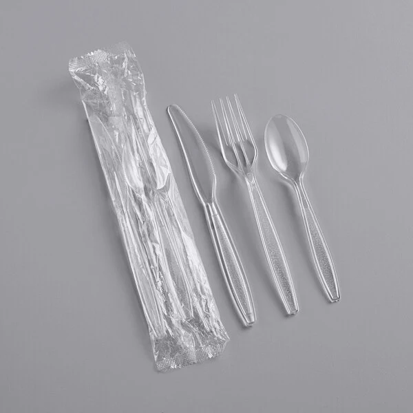 Plastic Cutlery Set Heavy Weight Fork, Knife & Teaspoon Clear [500 Pack]