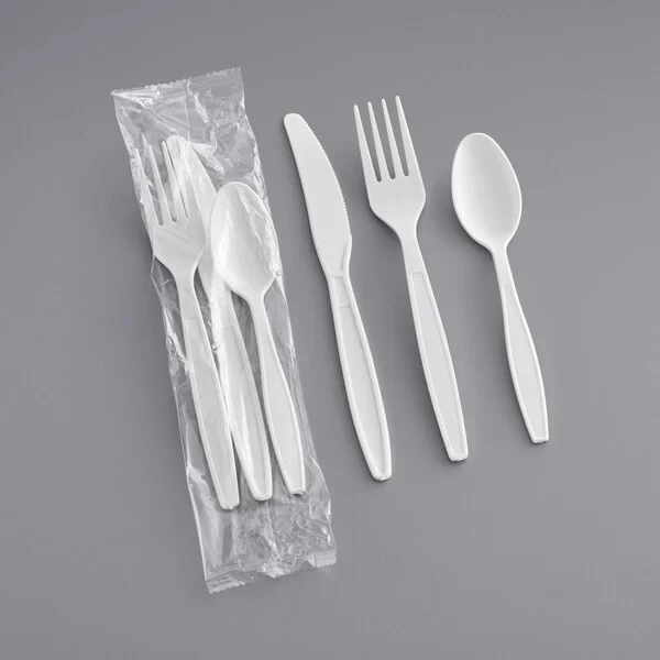 Plastic Cutlery Set Heavy Weight Fork, Knife & Teaspoon White [500 Pack]